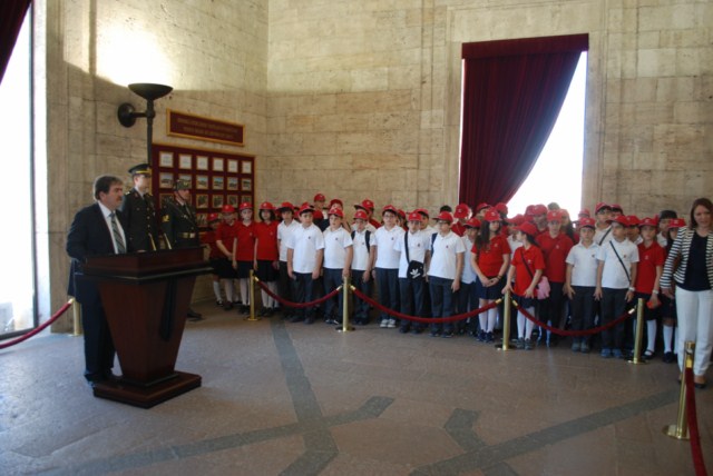 16 Mayıs 2014 Cuma günü okulumuz bahçesinden otobüslerimize binerek yola çıktık. Kahvaltı için verilen molanın ardından Ankara’ya ve Anıtkabir’ e ulaştık. Okulumuz için hazırlanan çelengi görünce Atamızın huzuruna varmak, onun evladı olmaktan onurlanmak için çok az kaldığından artık emindik. Askerlerle birlikte tören düzeni alıp ölümsüz Atamızın huzurunda saygı duruşunda bulunduk ve çelengimizi sunduk Anı defterini müdürümüz bizler adına yazdı. Rehberler eşliğinde Anıtkabir’i gezdik; MTA müzesini ve Enerji Parkını da gezerek Ankara gezimizi tamamladık.