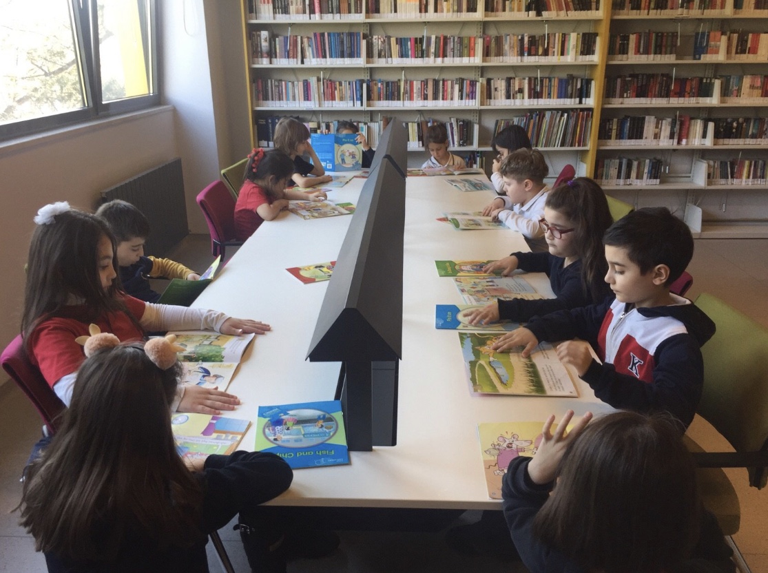 Birinci sınıf öğrencilerimiz bu sene de 2. Dönem itibariyle okulumuzun kütüphanesinde Reading & Storytelling /İngilizce Okuma ve Hikaye Anlatımı derslerine başladılar. Çocuklarımıza kitap okuma alışkanlığı kazandırmak, onları okumaya teşvik etmek ve onların kitapların gizemli dünyasına girmelerini sağlamak amacıyla yapılan bu derslerde önce öğrencilerimize seviyelerine uygun İngilizce yayınlar okutulmakta ve devamında onların hayal gücünü geliştirecek ve eleştirel düşünmelerini sağlayabilecek hikaye anlatımı yapılmaktadır.