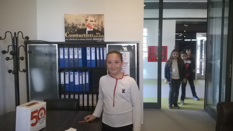 “Okul Temsilcisi Seçimi” için gizli oylama – açık tasnif yöntemiyle seçim yapılarak 4-D sınıfı öğrencilerimizden Nazlı TAHERİ oy çoğunluğunu alarak, okul temsilcimiz olarak seçilmiştir.