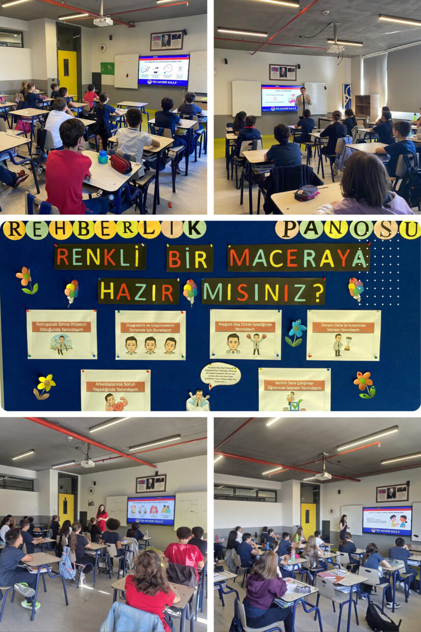 Öğrencilerimizin kendi duygu ve düşüncelerinin farkında olma, kendini ifade edebilme, empati yapabilme, çevresindeki kişilerle olumlu iletişim kurabilme-sürdürebilme ve kendini yönetebilme becerilerini kazandırmaya yönelik çalışmalar yapılır. Rehberlik çalışmaları öğrencilerin ihtiyaçlarına göre belirlenen konular çerçevesinde ilerlemektedir.