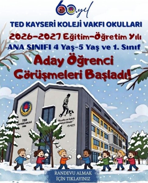 Sayın Velimiz, 2025-2026 eğitim-öğretim yılında TED Kayseri Koleji Vakfı Özel Ortaokulunda 8. sınıfı bitirerek, 2026-2027 eğitim-öğretim yılında TED Kayseri Koleji Vakfı Özel Lisesi 9. Sınıfına devam […]