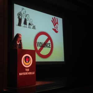 Okulumuz 9, 10 ve 11. sınıf öğrencileri İngilizce dersinde “Serbest Kürsü” başlığı altında, kendilerine verilen “Ergenlerin Yeme Alışkanlıkları, İnsan Hakları ve Aile İçi ve Kadına Şiddet” gibi konularda görüşlerini İngilizce olarak belirtip arkadaşlarının da sorularına cevap vererek paylaşım yaptıkları bir tartışma düzenlemişlerdir.